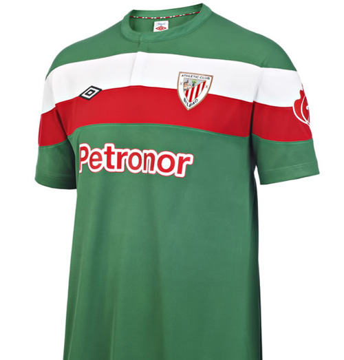 Athletic Bilbao sin er en praktverk av en drakt, men for å kunne si det må man kunne litt om laget og dets posisjon. De to horisontale stripene er selvsagt fra Athletic’s sin hjemmedrakt. Grønnfargen er fra Baskerland.