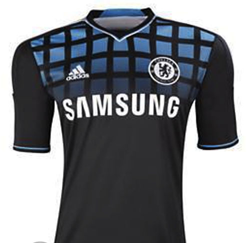 Designeren har i Chelseas tilfelle skjønt at det ville blitt for mye med ruter ned hele fronten, og dermed holdt seg til den øvre delen. Et vellykket grep.